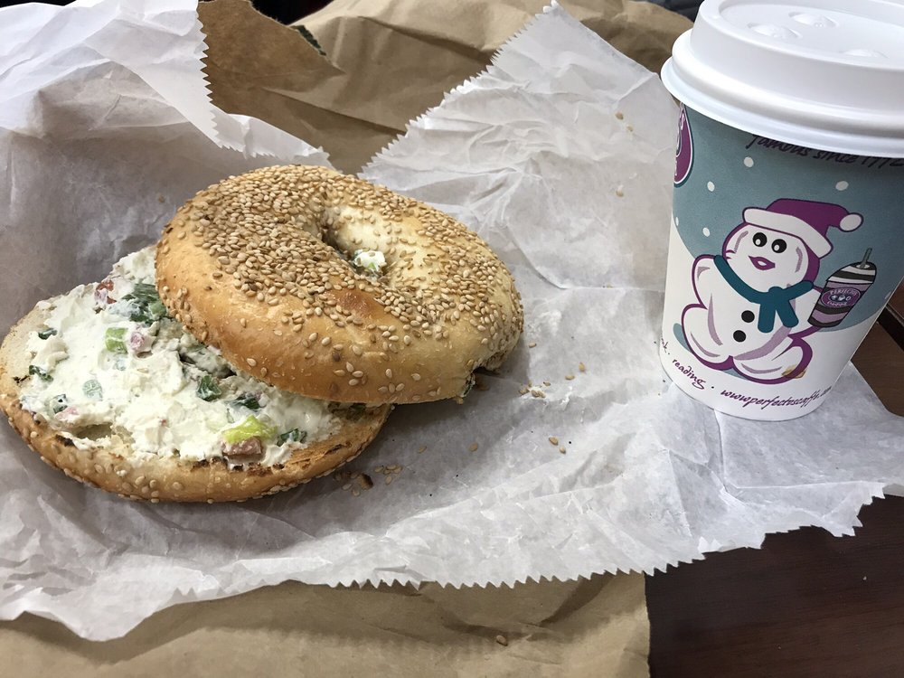 Perfecto's Caffe, located in Andover, MA, is a charming cafe offering a variety of delicious food and drinks. With options for delivery, takeout, and catering, it's a convenient choice for all occasions. The menu boasts a selection of egg sandwiches, gourmet muffins, and bagels with spreads, including unique choices like the Farmer's Special and Spinach, Feta, and Cheddar Sandwich. Customers have praised the quick service and the quality of the food, with favorites like the french toast bagel receiving high praise. The cafe's casual atmosphere, free Wi-Fi, and outdoor seating make it a great spot to relax or grab a quick bite. Whether you're looking for a hearty breakfast or a midday snack, Perfecto's Caffe has something for everyone.